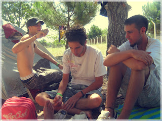 Cuenta que cuenta la historia (que acaba de inventar) que el origen de las sonrisas se dió cuando un colgado miró al cielo y vió a la luna recién naciendo. Bien finita: como una pincelada (de pincel finito, claro).El colgado con sus labios quiso imitar esa forma. Mientras empezaba a fortalecer sus cachetes (cosa por la que después su abuela agradecería) se dió cuenta que sonreir lo hacía sentir mejor.Cuentan que desde ese entonces repetía esa expresión en su cara cuando veía, escuchaba, sentía y/o etc. algo que le gustaba o lo hacía pleno.La primera en copiar el gesto fue la-pareja-del-colgado, casi por reflejo, al verle estrellitas brillantes en los ojos cuando la miraba (mientras hacía ese nuevo gesto)(Cuándo y cómo dejaron de sonreírse no me contaron). Se cuenta que hoy en día (hoy en noche) nadie sonríe al ver a la luna sonreir, que ya nadie sonríe (sin un poco de maldad), se cuenta también que ya no hay colgados mirando la luna.